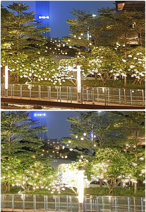 5倍变焦夜拍样张对比:vivo X70 Pro+(上)、华为P50 Pro(下)