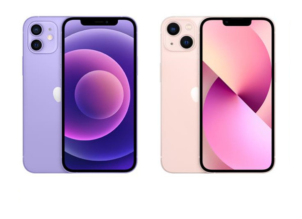 苹果12的两个摄像头位于同一垂直线上,而苹果13的两个摄像头采用对角线设计。