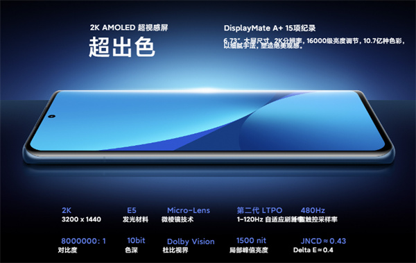 小米12 Pro升级至6.73英寸,分辨率3200x1440,三星E5发光材料,第二代LPTO和120Hz刷新率,支持十指480Hz触控采样率,号称第二代低功耗2K屏幕。