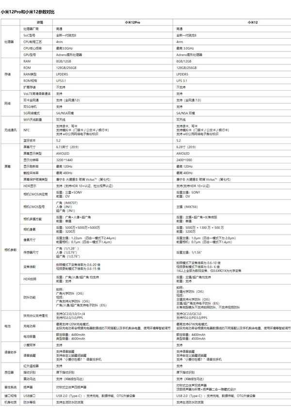 以上就是智能家小编给大家带来的关于“小米12对比小米12pro”的全部内容了,了解更多智能资讯尽在智能家(m.znj.com)!