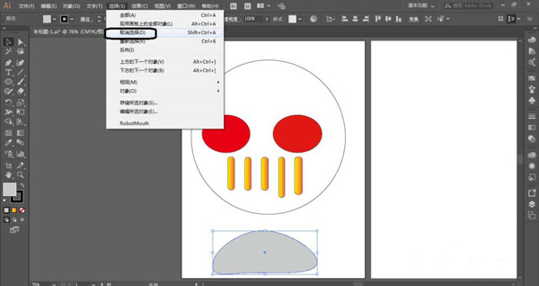 2、点击菜单栏的【选择】,点击【取消选择】即可。