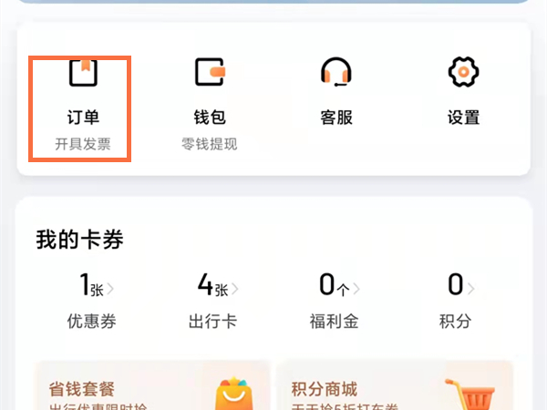 1、打开滴滴出行app,在我的页面点击订单。