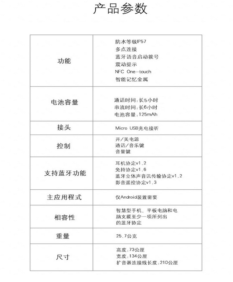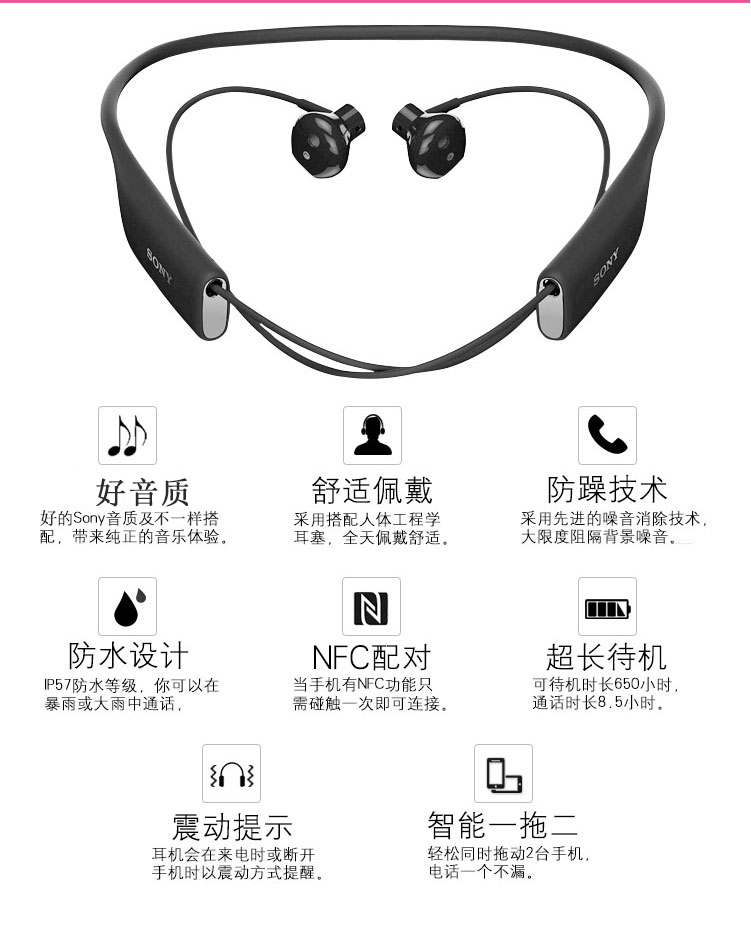 NFC配对 好音质 舒适佩戴 防躁技术 防水设计 震动提示