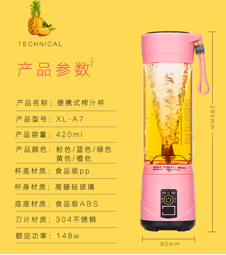 夏朗便携式电动榨汁杯 橙色 相关资讯