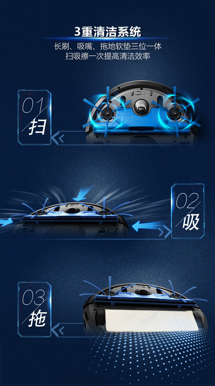 智能扫地机扫、吸、拖三位一体!高效清洁!续航达90分钟!配遥控器,预约功能!