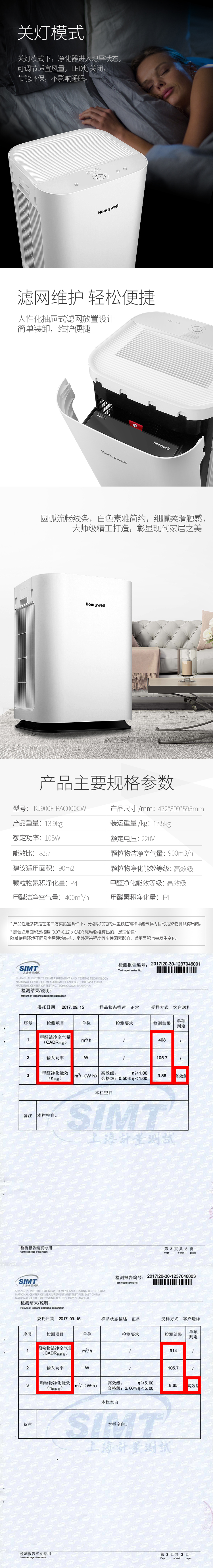 霍尼韦尔KJ900F-PAC000CW空气净化器 产品对比