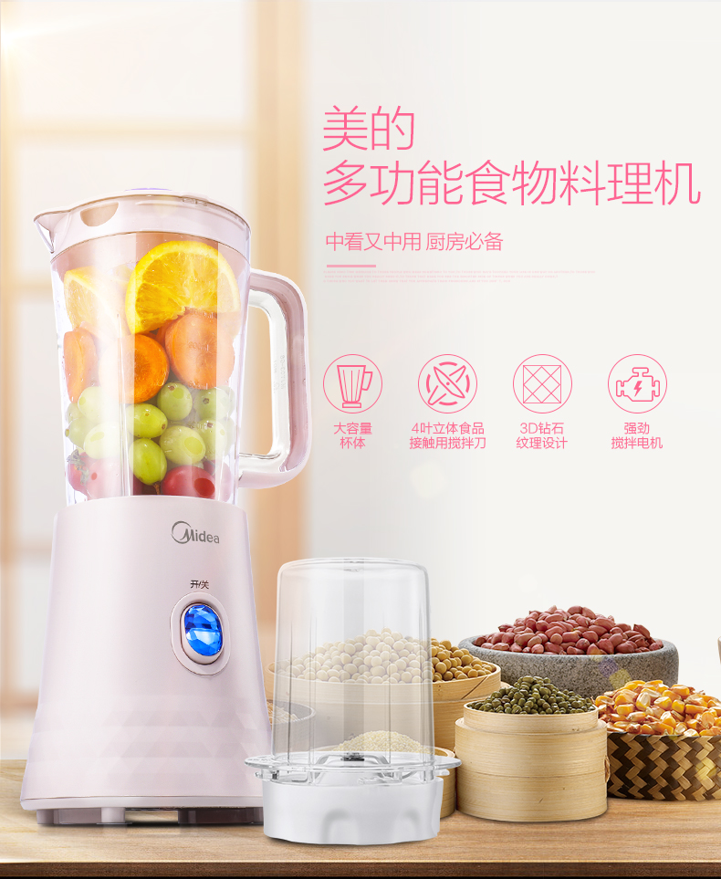 果汁 奶昔 豆浆 干磨 搅拌 碎冰 婴儿辅食多功能,食品级材质,高速纯铜电机,时尚小巧!