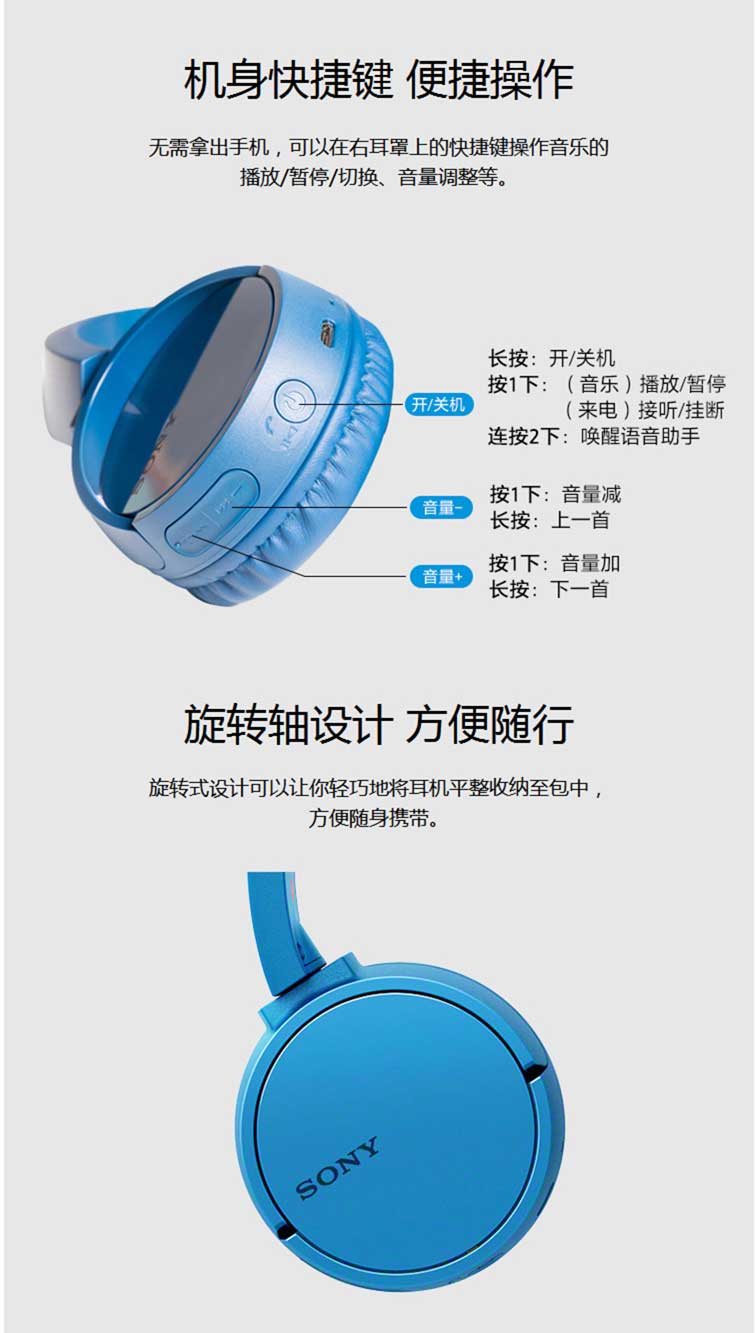 索尼WH-CH500耳机是一款无线蓝牙耳机,通过蓝牙连接到手机上之后就可以收听手机的音乐了,同时还能通过耳机上的按键控制...