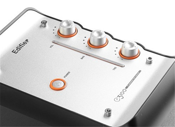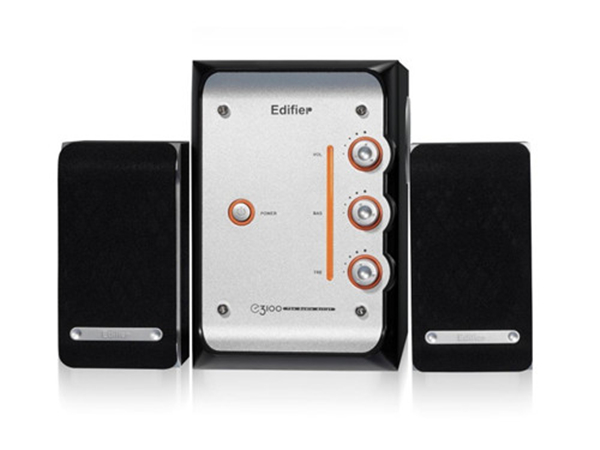 漫步者E3100是漫步者时尚E系列的第一款音箱,黑色箱体搭配金属色面板,再加以橙色旋钮镶边,双曲面倒相孔设计配合嵌入式全铝面板,给人感觉时尚富有活力,箱体右侧三个旋钮突起,可以方便的调控音量和高低音,旋钮旁的橙色导光带与旋钮外圈交相呼应,使音响整体显得超凡脱俗。