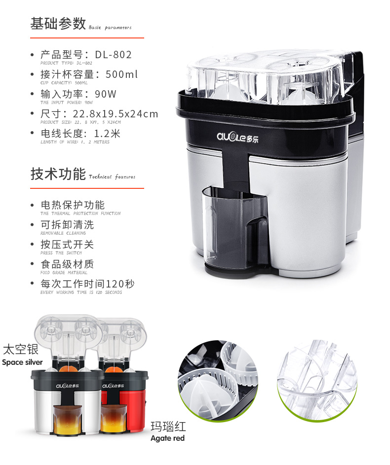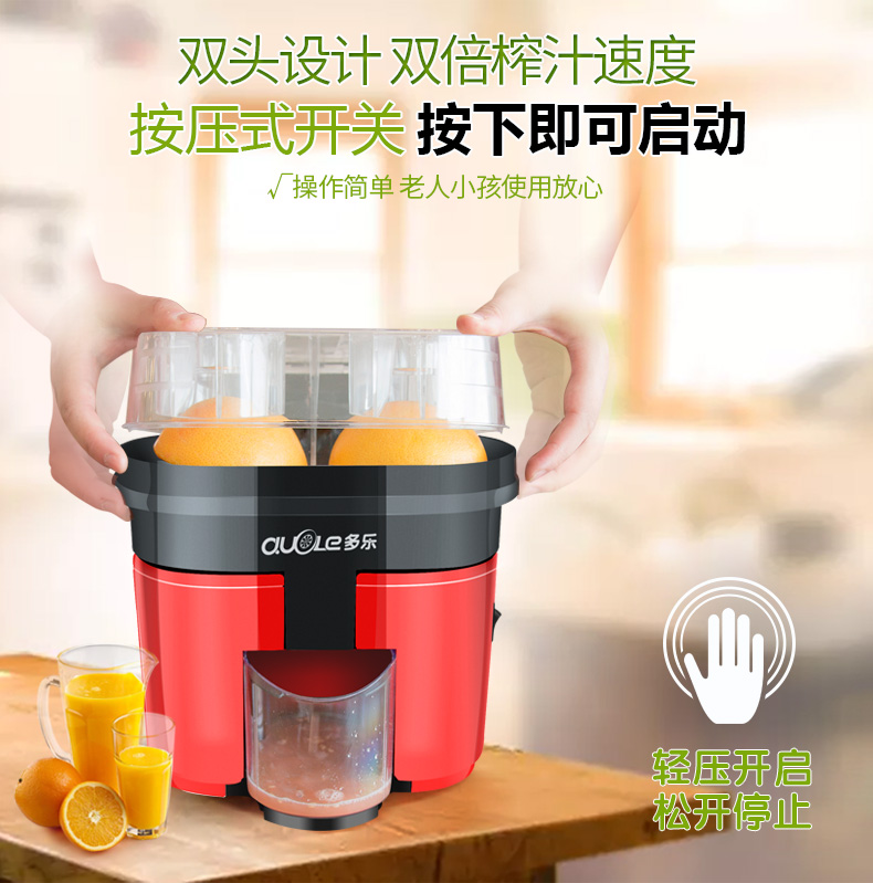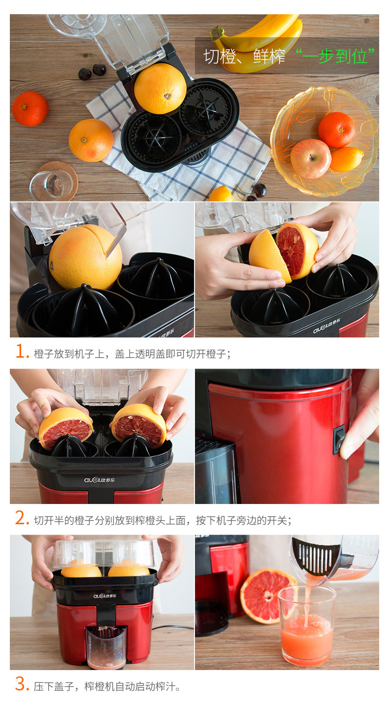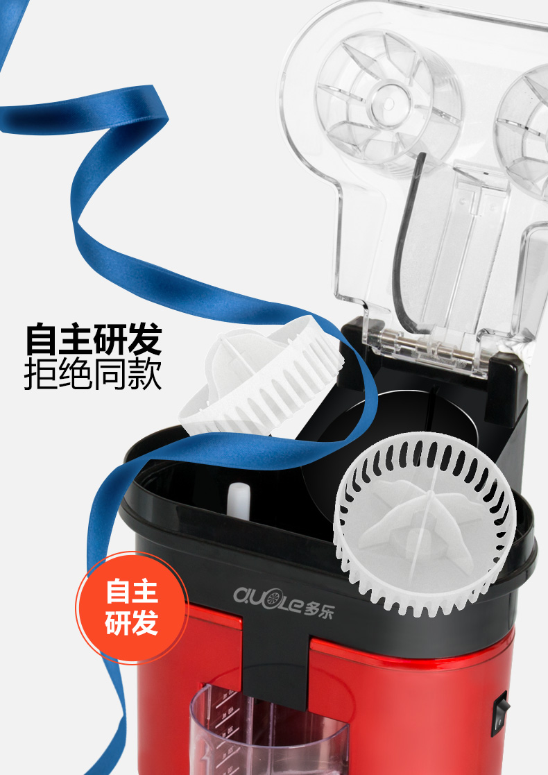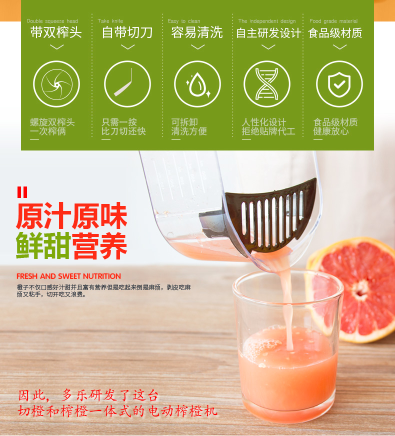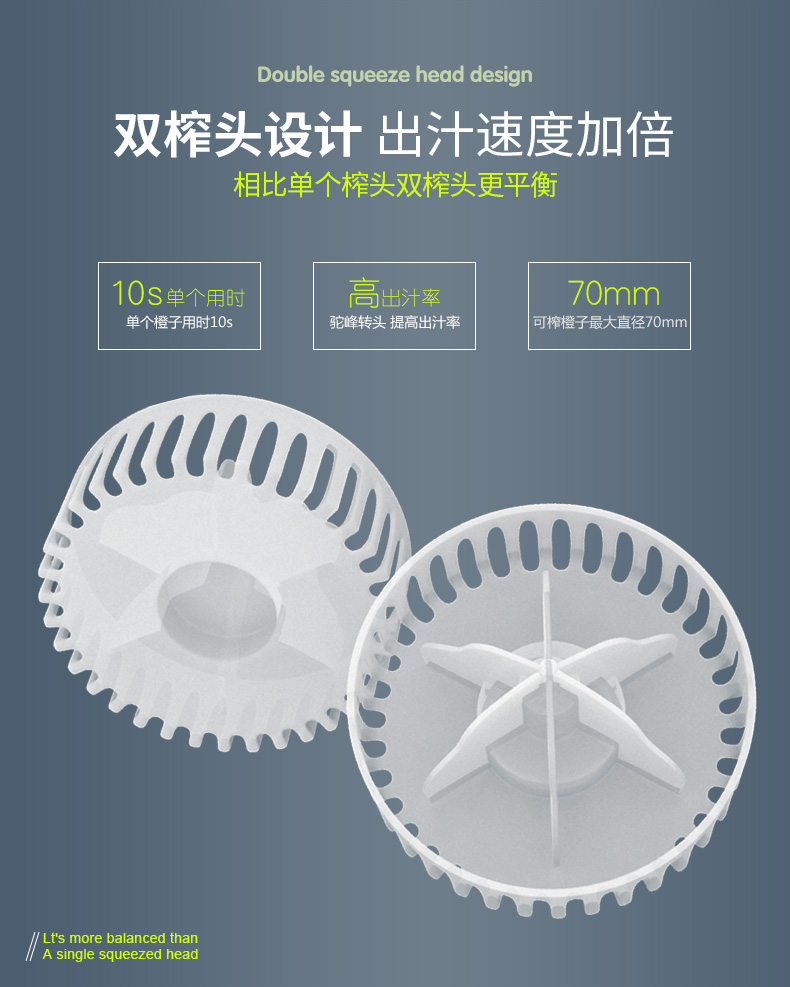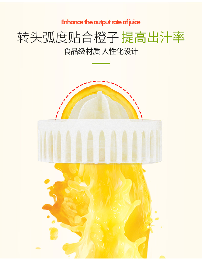 高出汁率,双椎头设计,榨汁更快,自带切橙刀,切橙榨橙一步到位