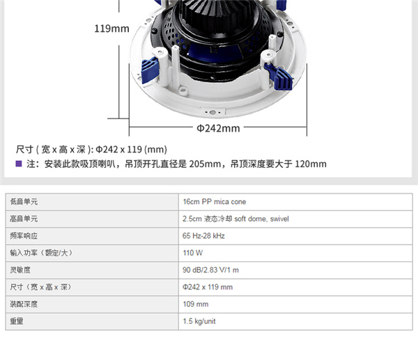 家庭影院/定阻/吸顶/背景音乐/环绕音箱(一对)6英寸低频扬声器