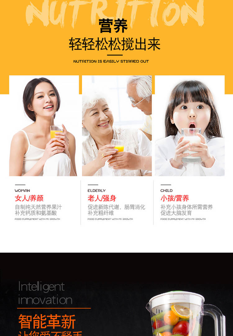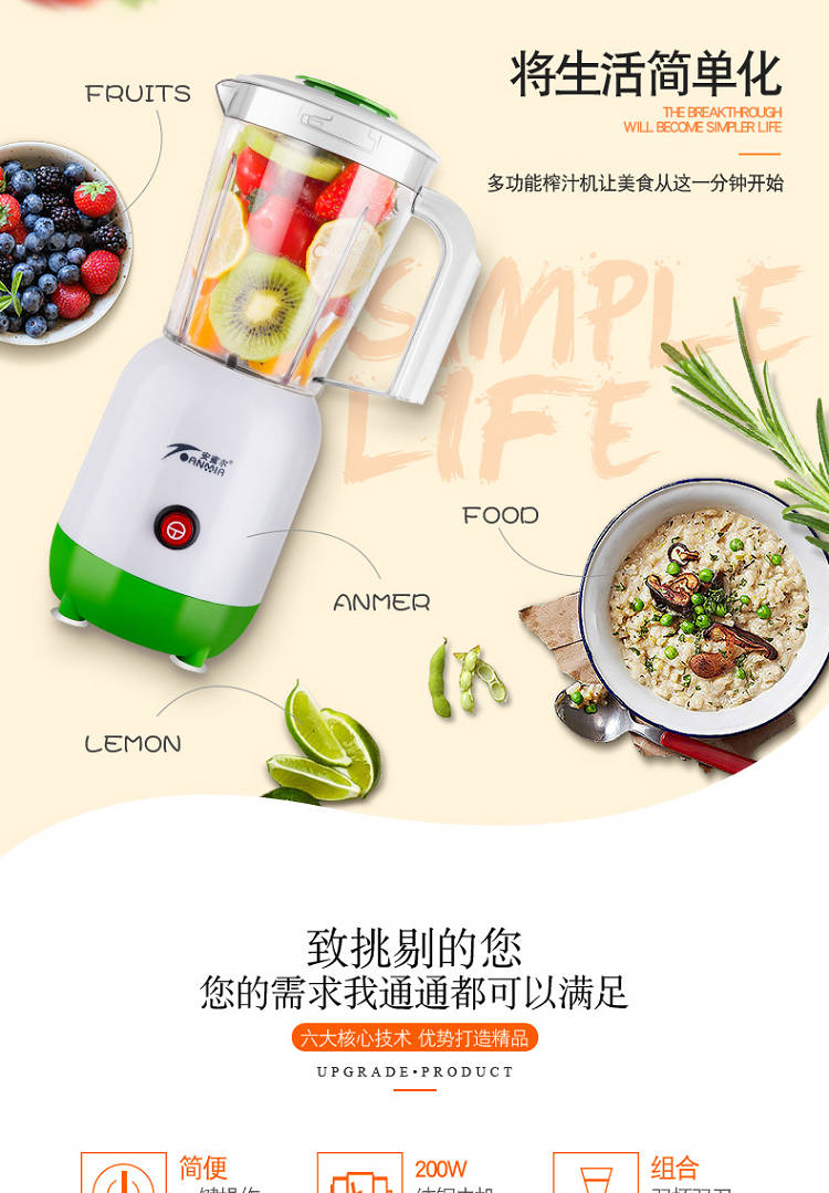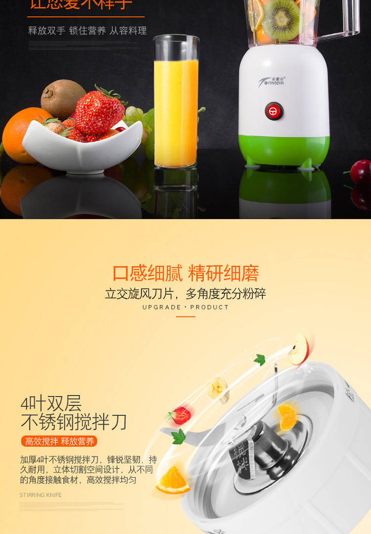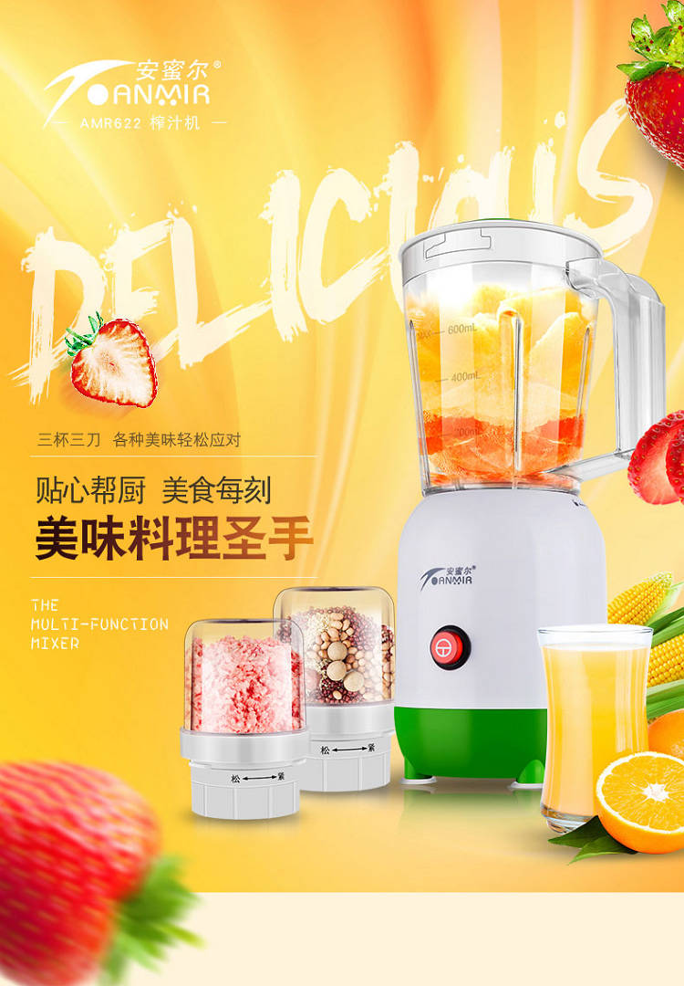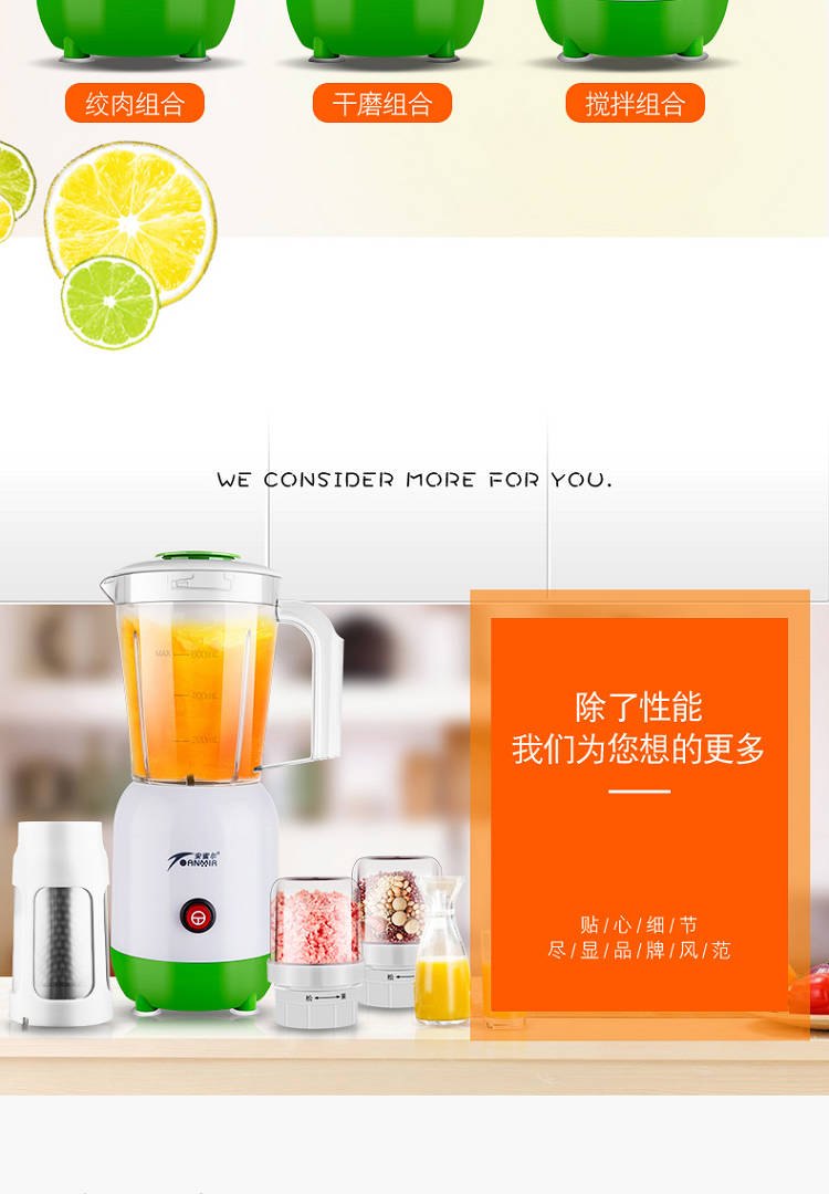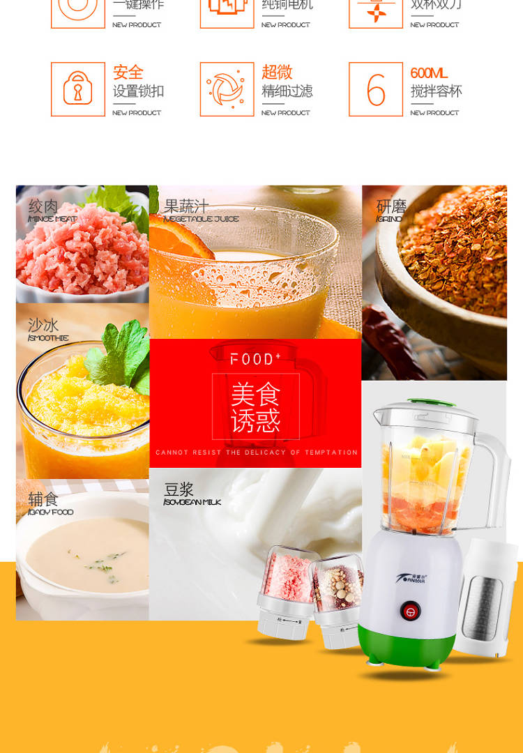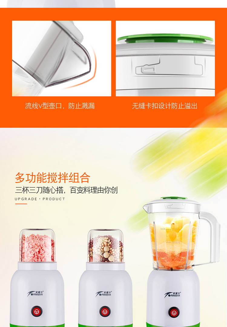 多功能料榨机,榨汁、搅拌、干磨、绞肉、豆浆功能,三杯五刀不串味