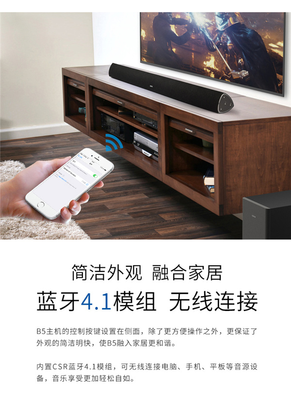 回音壁电视音箱 2.1家庭影院音箱 黑色