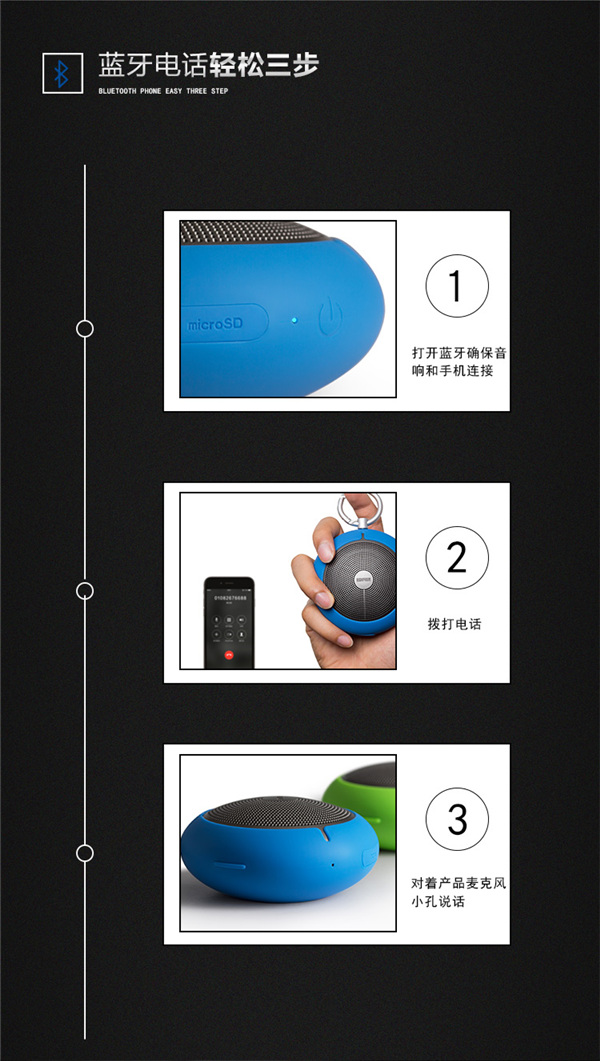 1、将microSD卡插入扬声器的卡槽内,直到指示灯亮橙色。2、插入的microSD卡最大支持32GB,支持MP3格式的...
