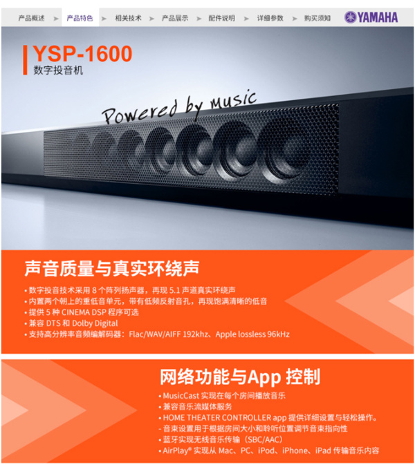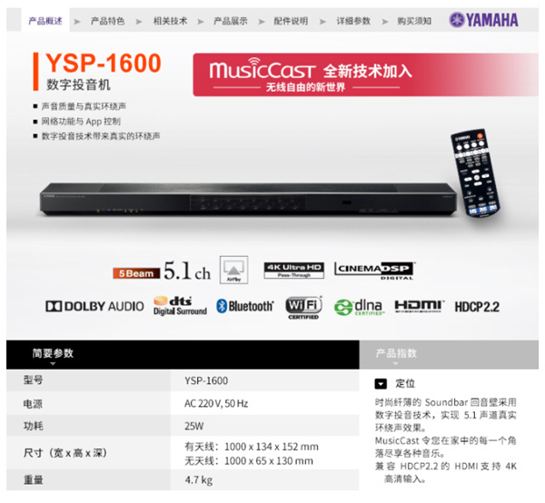 雅马哈YSP-1600回音壁音箱 相关资讯