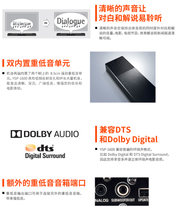 雅马哈YSP-1600回音壁音箱 产品对比