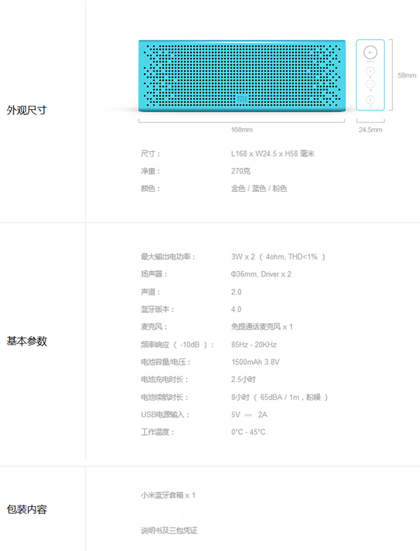 小米方盒子蓝牙音箱2 产品对比