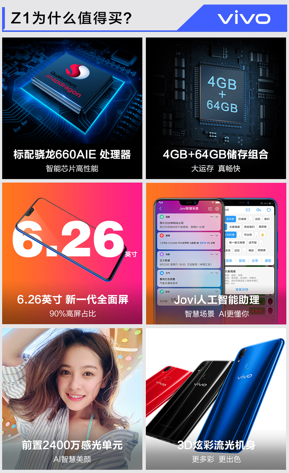 vivoZ1新一代全面屏双摄拍照4G+64G大内存智能手机极光特别版