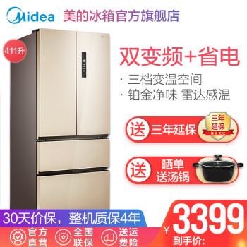 【品牌直营】美的电冰箱无霜对开门多门双开门411升家用智能冰箱BCD-411WTPM(E)