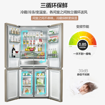 美的(Midea)530升智能变频十字多门风冷冰箱BCD-530WGPZV格调金