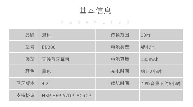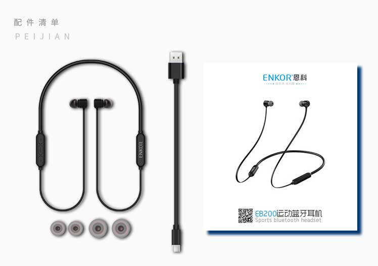 恩科(ENKOR)EB200运动无线蓝牙耳机颈挂式磁吸跑步健身入耳式通话立体声耳机苹果安卓通用