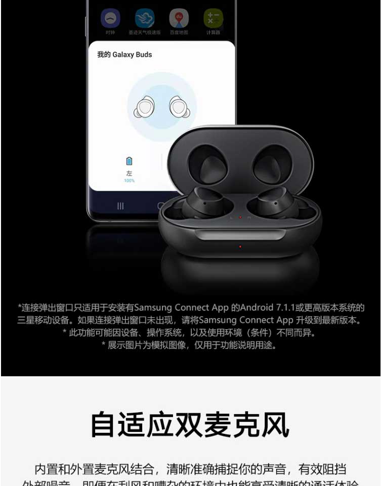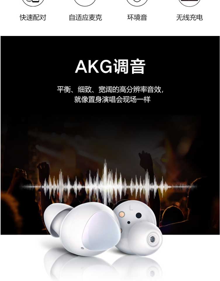 三星SAMSUNGGalaxyBuds真无线无线蓝牙入耳式耳机环境感知立体声运动耳机智能触控AKG品质音效魔力黑