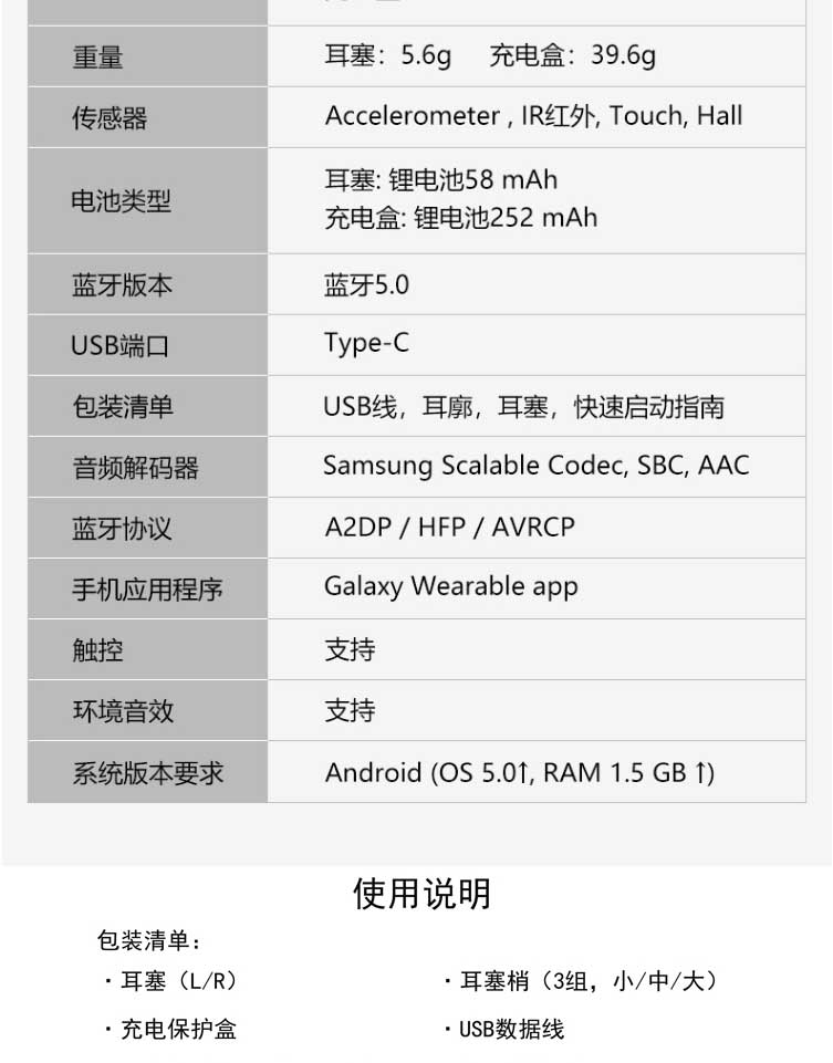三星buds4个麦克风,适应双麦克风技术,耳塞58mAh、充电盒252mAh。三星 Buds+6个麦克风,适应三麦克系统...