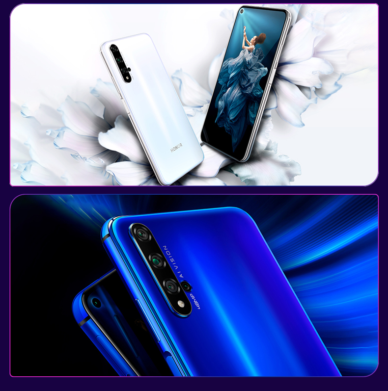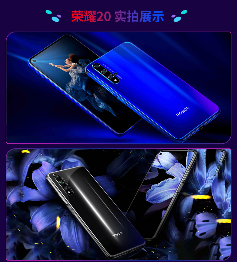 荣耀20和荣耀v20最主要的差别是荣耀20采用五摄像头,后置4摄,而荣耀v20采用三摄像头,后置双摄,荣耀20搭载了37...