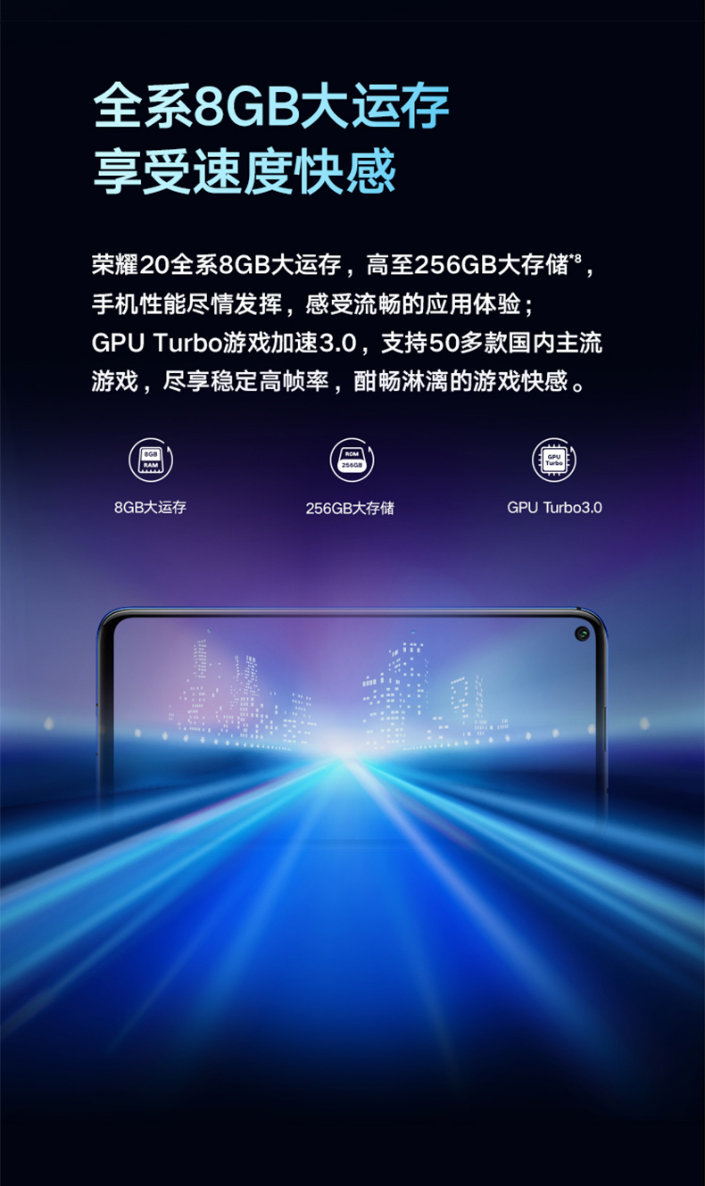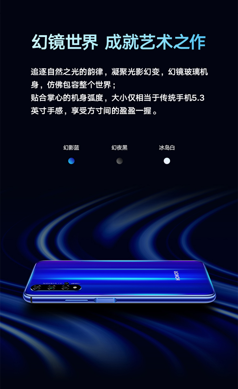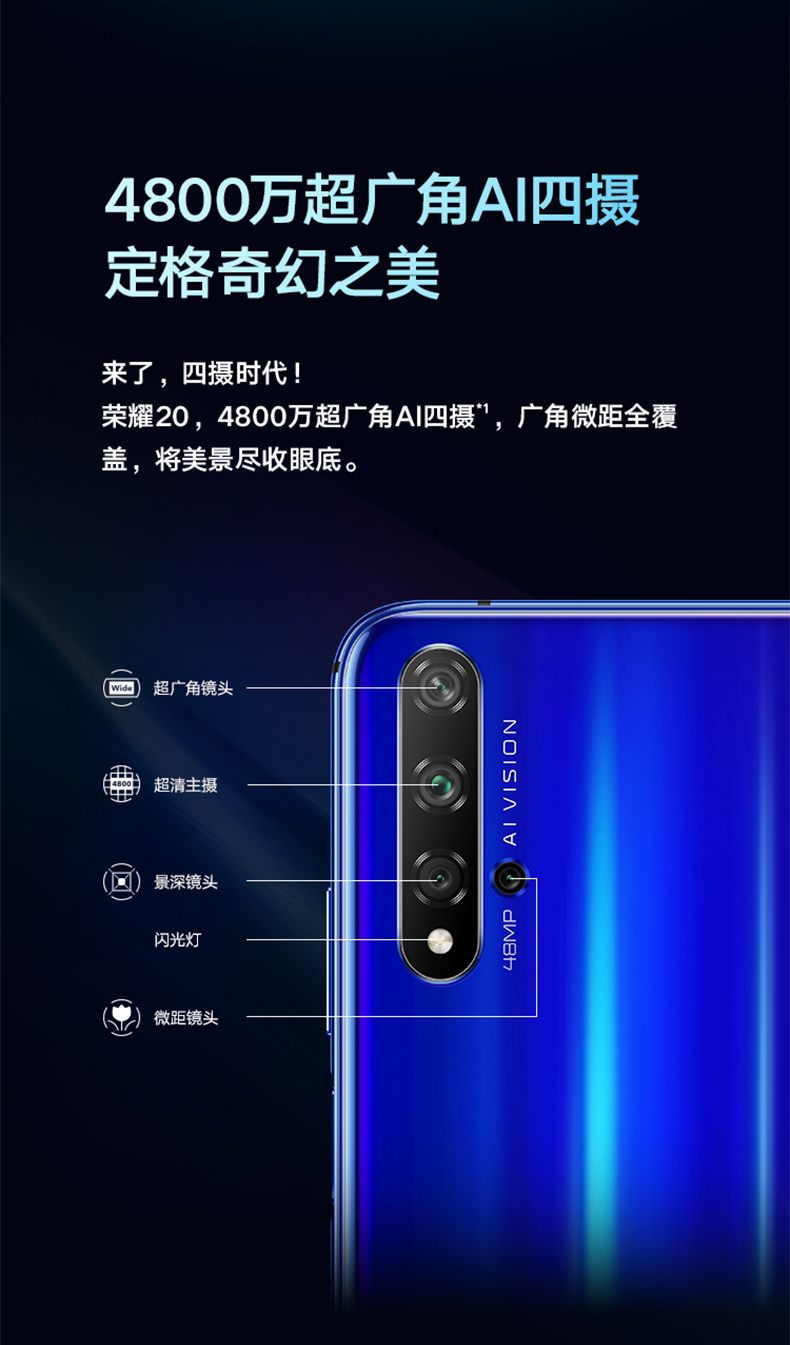 荣耀204800万超广角AI四摄3200W美颜自拍麒麟Kirin980全网通版8GB+128GB幻影蓝移动联通电信4G全面屏