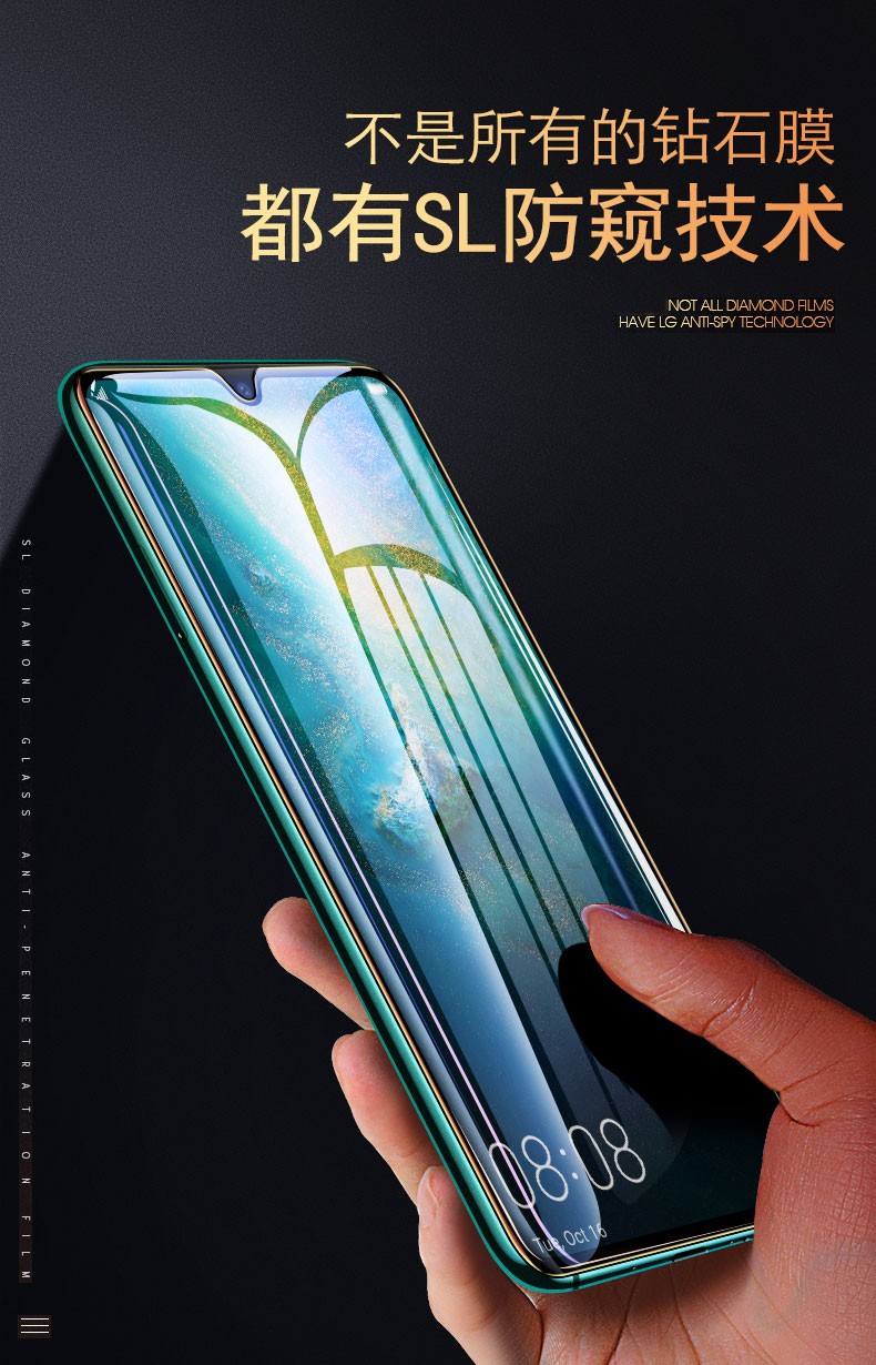华为mate20x防窥膜手机保护膜全屏曲面防爆保护隐私SL玻璃膜 华为mate20 x 全屏黑色 防窥钻石膜 1片装