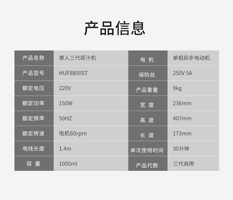 惠人HUF8800ST商用原汁机自动榨汁机 相关资讯