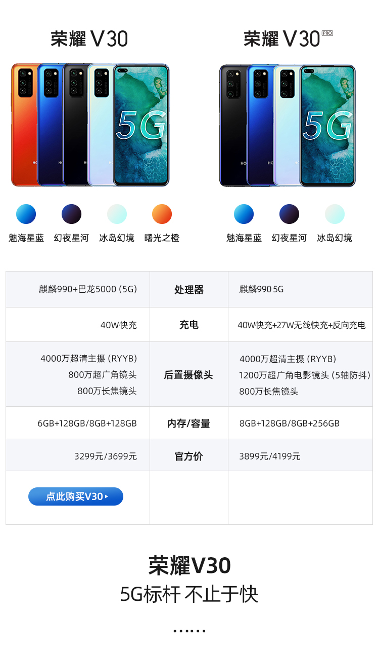 荣耀V30PRO 产品对比