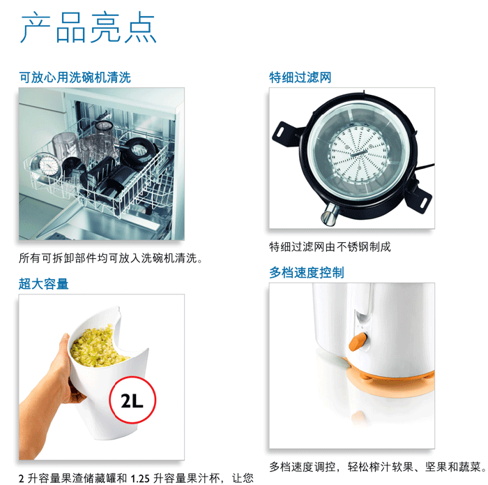 电动家用特细过滤网 大容量多档速度鲜榨机