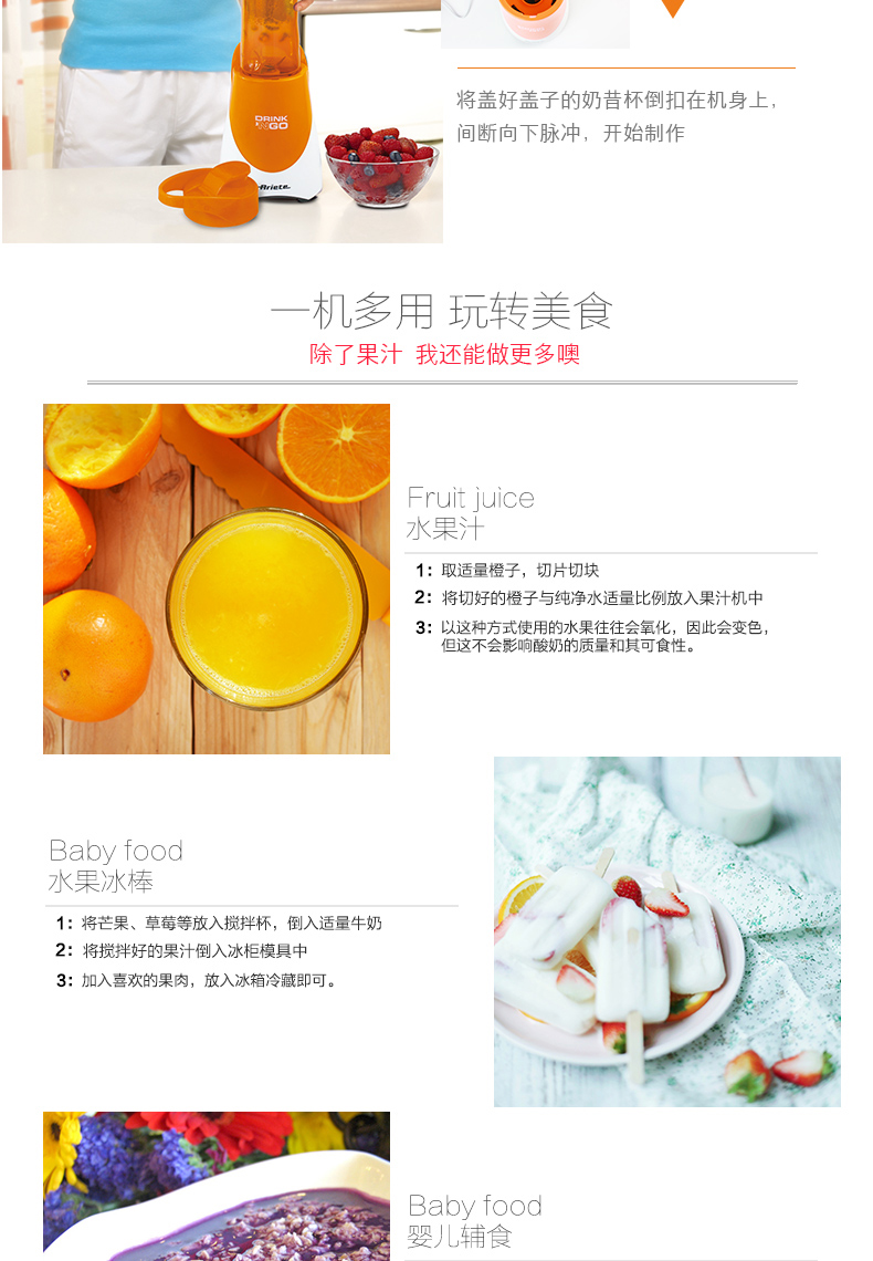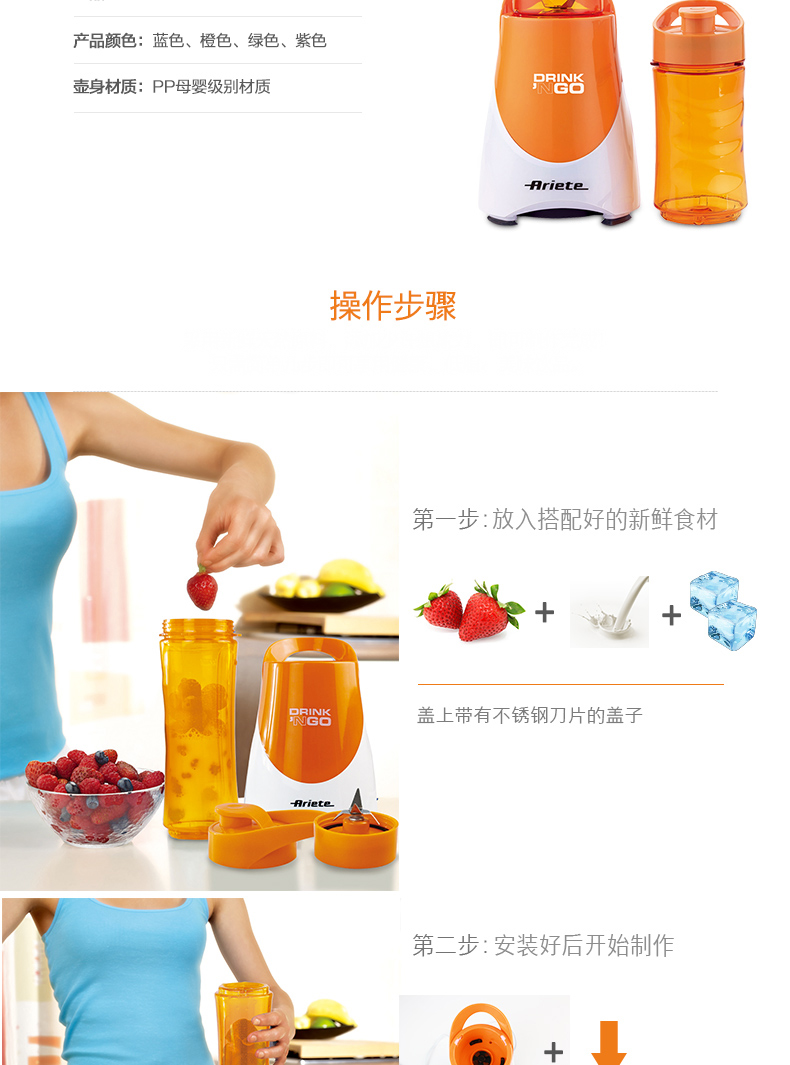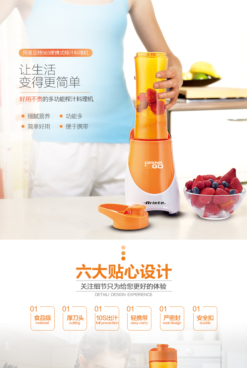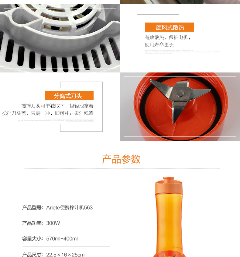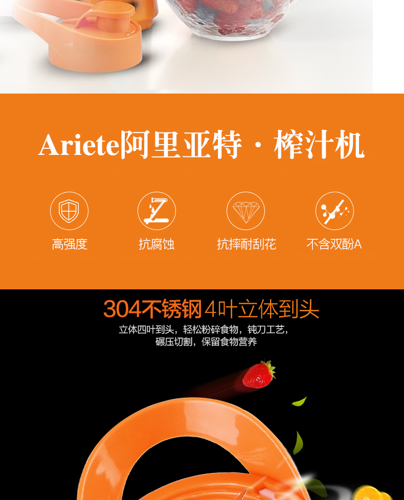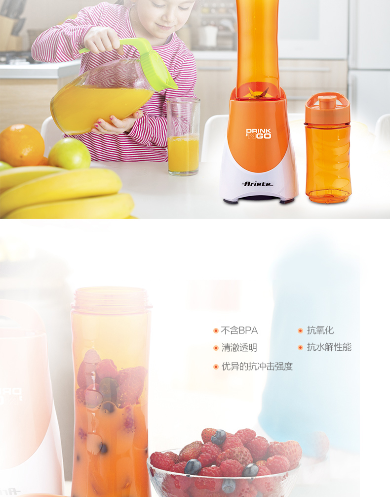 Ariete/阿里亚特 榨汁机杯便携式果汁杯 迷你料理机 魅力橙