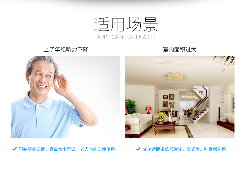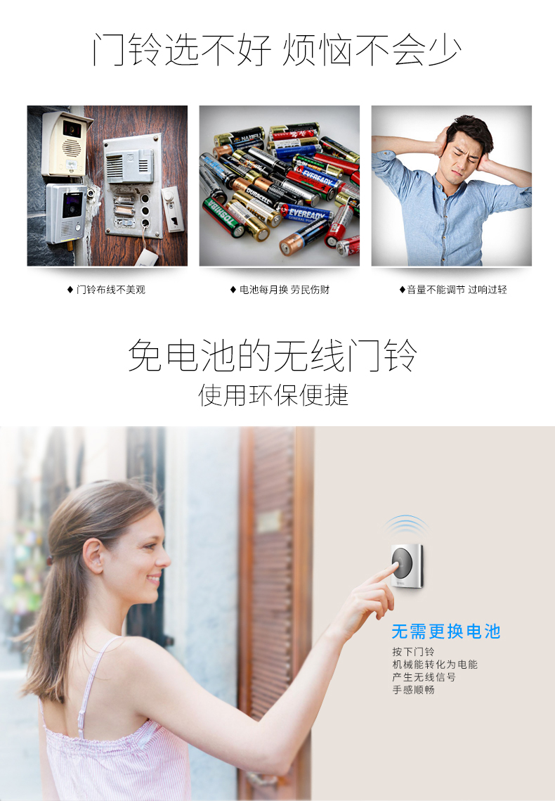 远距离不用电池别墅门铃 自发电智能无线门铃一拖一