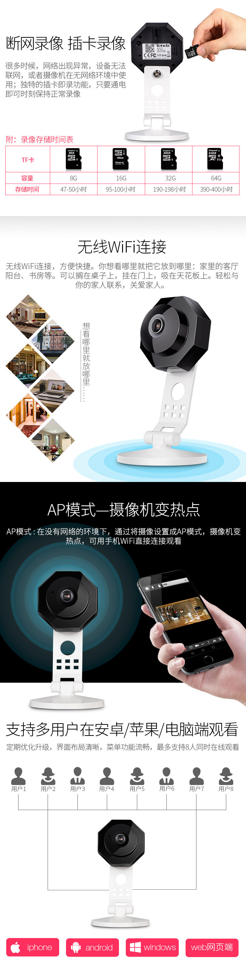家用无线摄像头 智能wifi网络摄像机 高清手机 监控