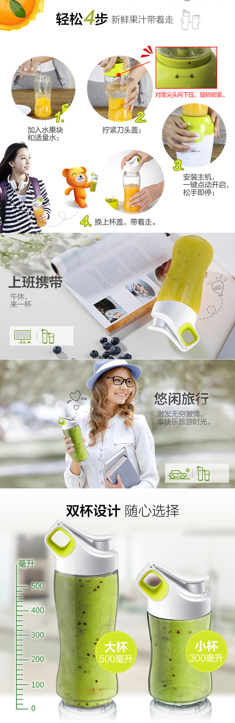 便携式料理杯,500ml+300ml双杯随心选择,点动开关,榨汁不费力!