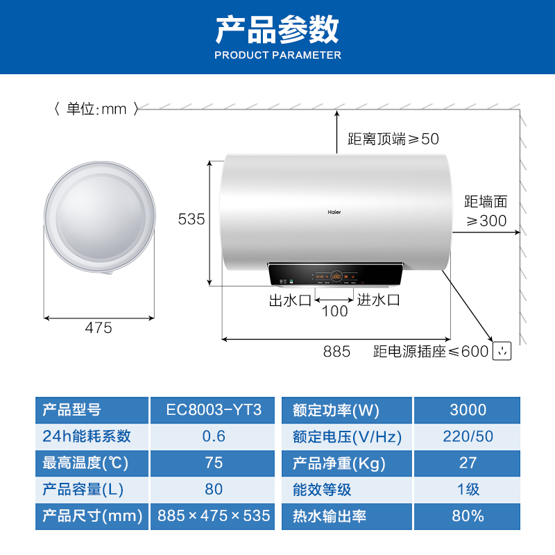 海尔热水器U1代表可以连接手机,运用电热水器时,接通电源,指示灯亮,表示正在电加热,当水温到达设定值后,指示灯熄灭,表示...